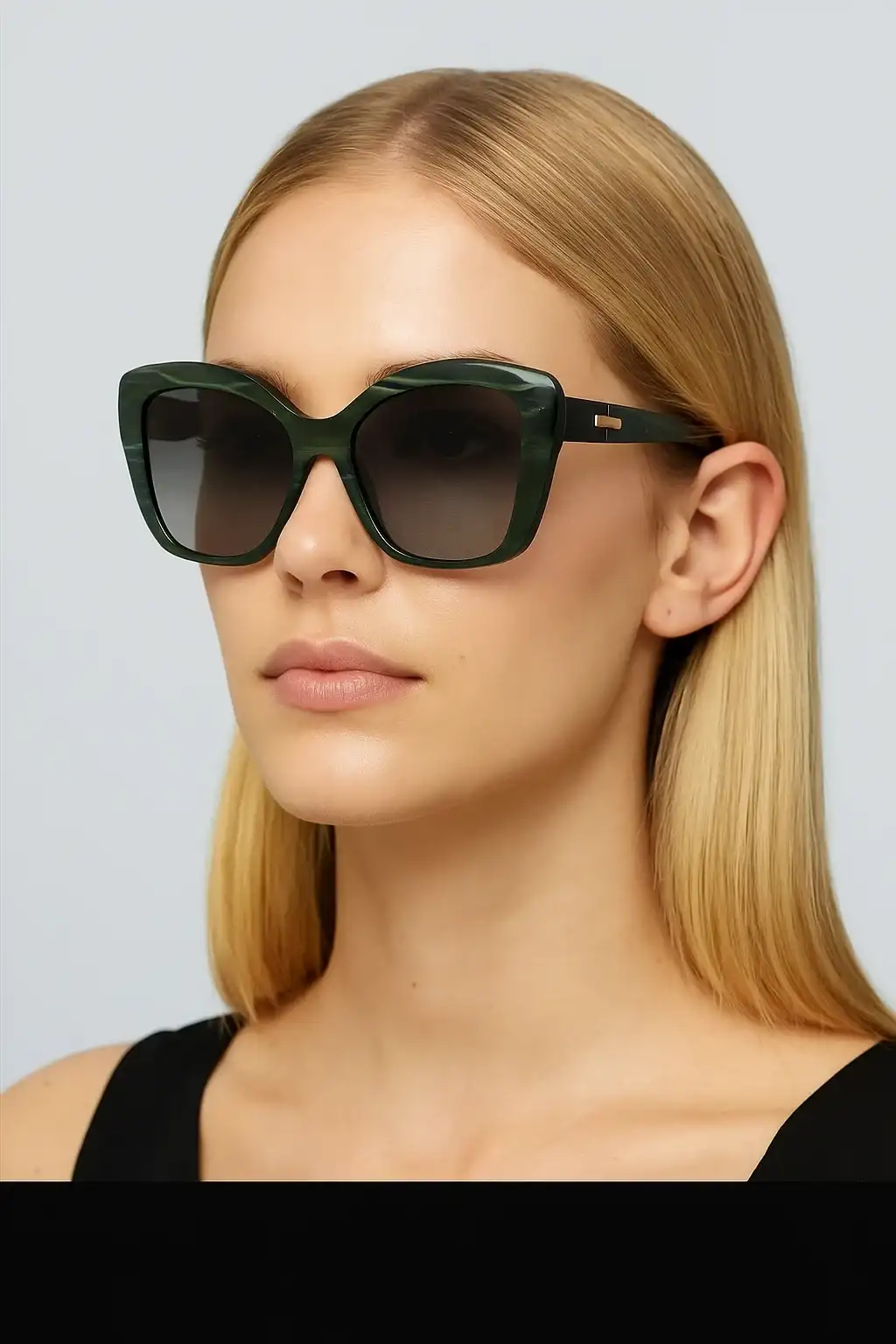 Asetat çerçeve yapısı sayesinde hafif ve dayanıklıdır. 54 mm cam genişliği ve 19 mm köprü aralığı ile birçok yüz tipine ideal uyum sağlar. Yeşil degrade lensler, parlak ışığı yumuşatırken daha yumuşak ve doğal bir görüş deneyimi sunar.